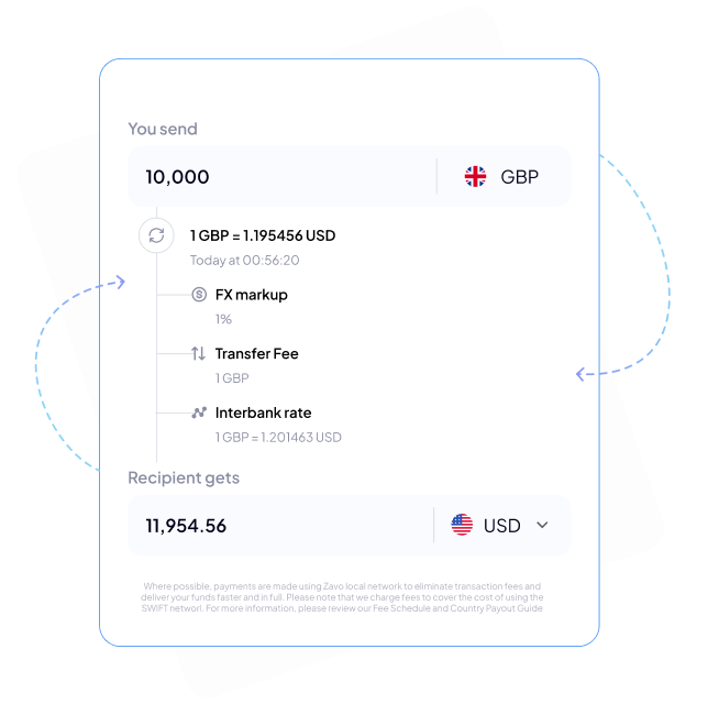 Access the Zavo payment network to convert and send payments as a local. This means that your respective payment will be sent to the recipient locally from their country. For faster, cheaper transfers.
